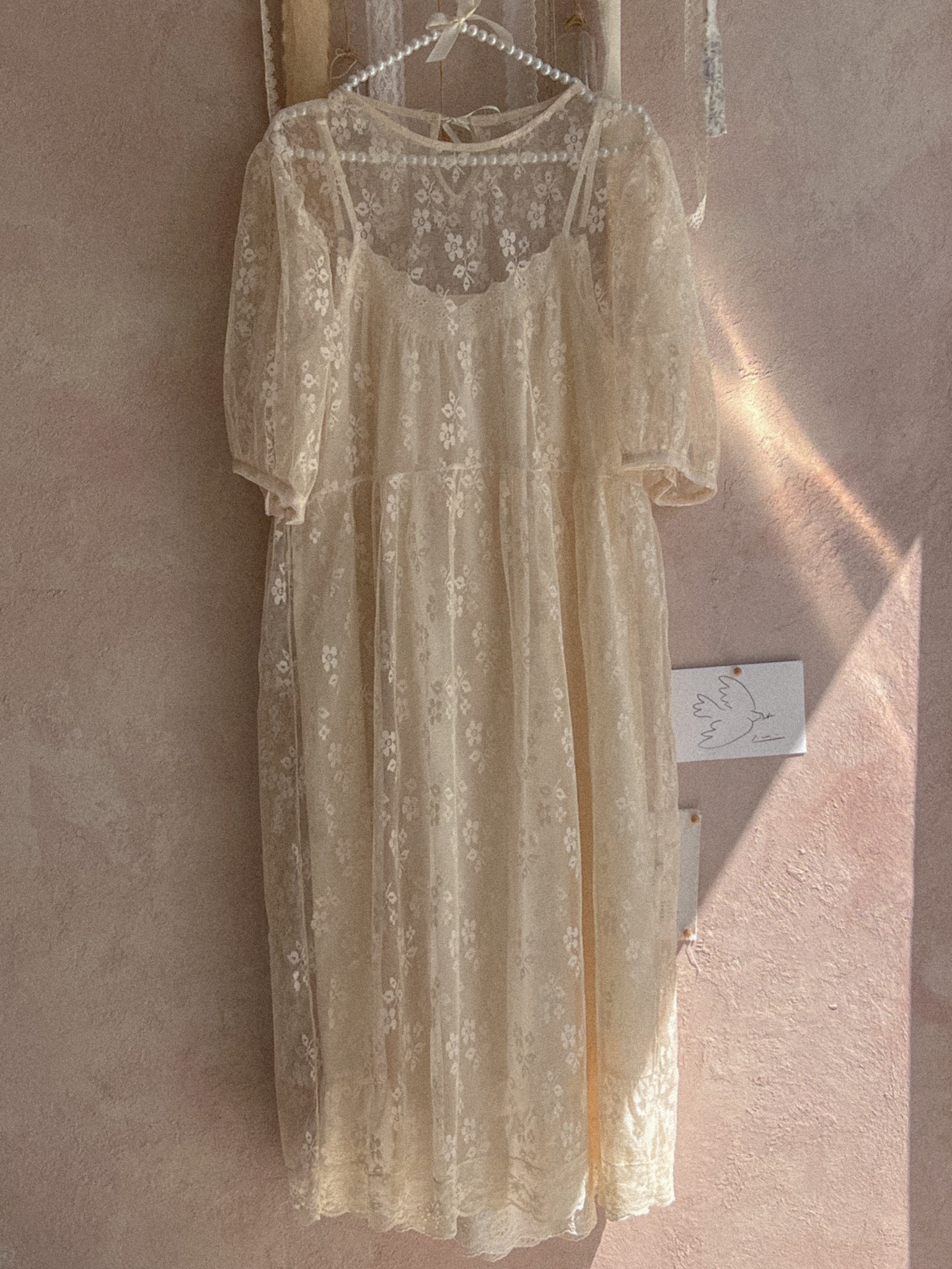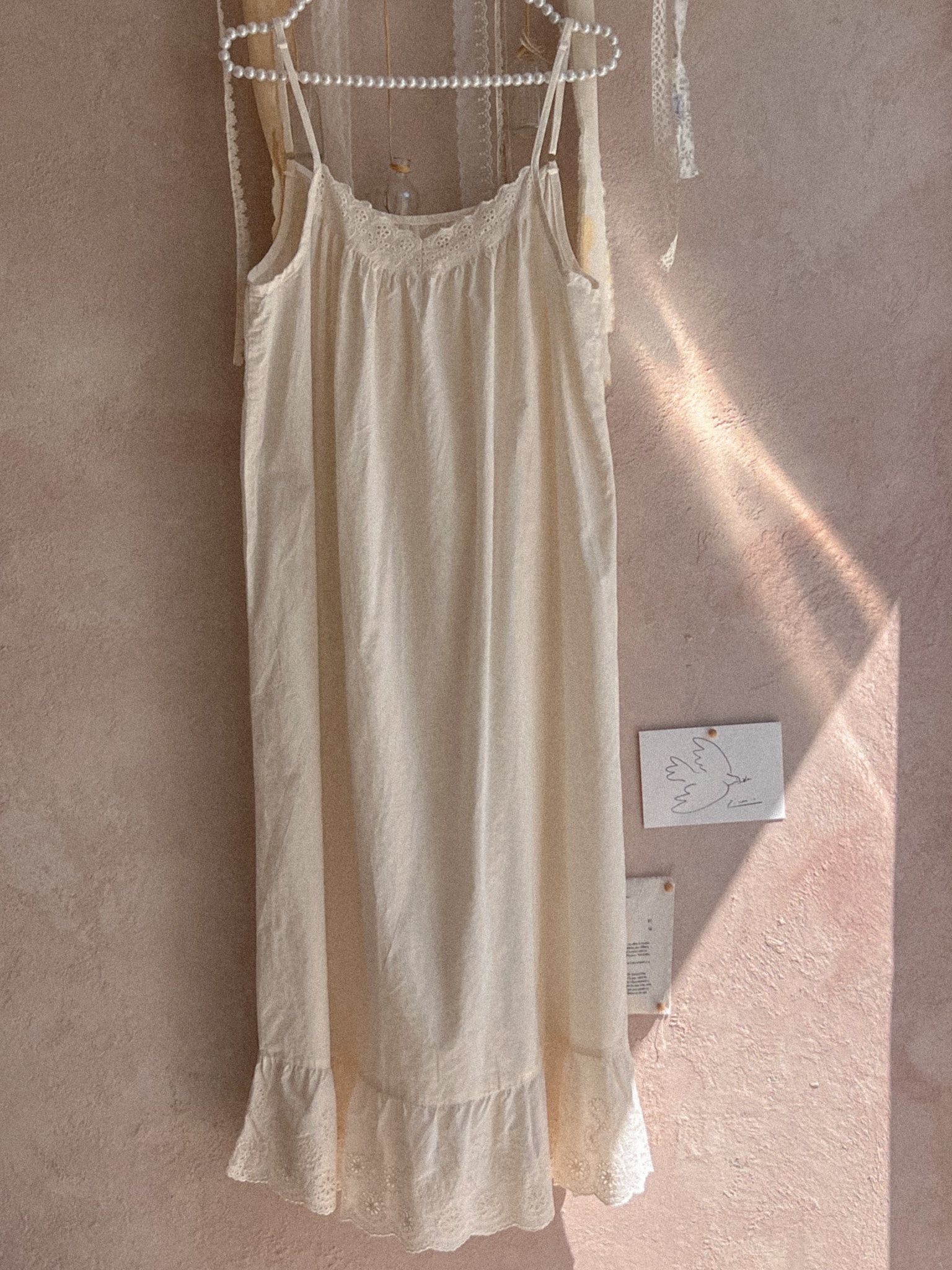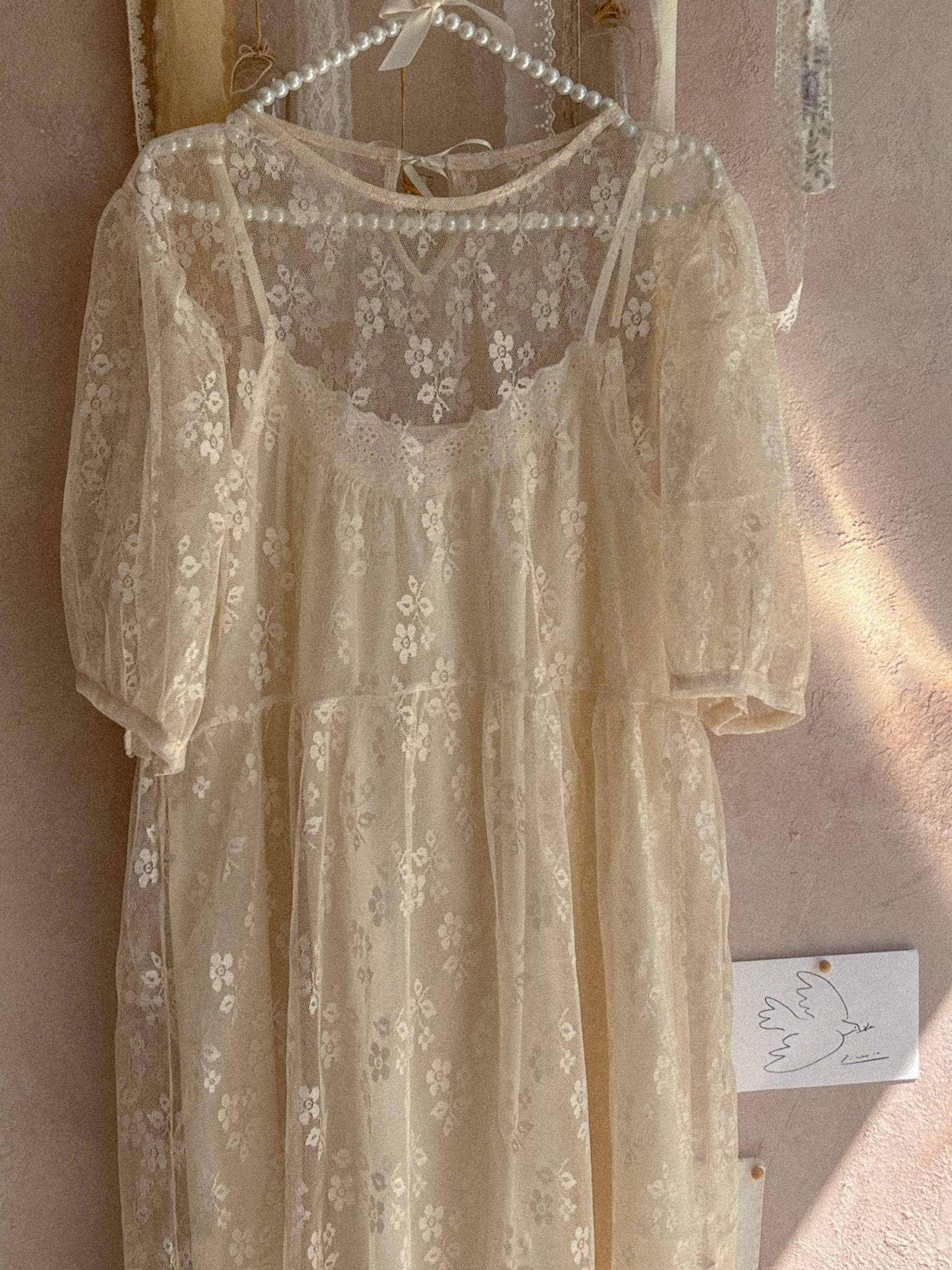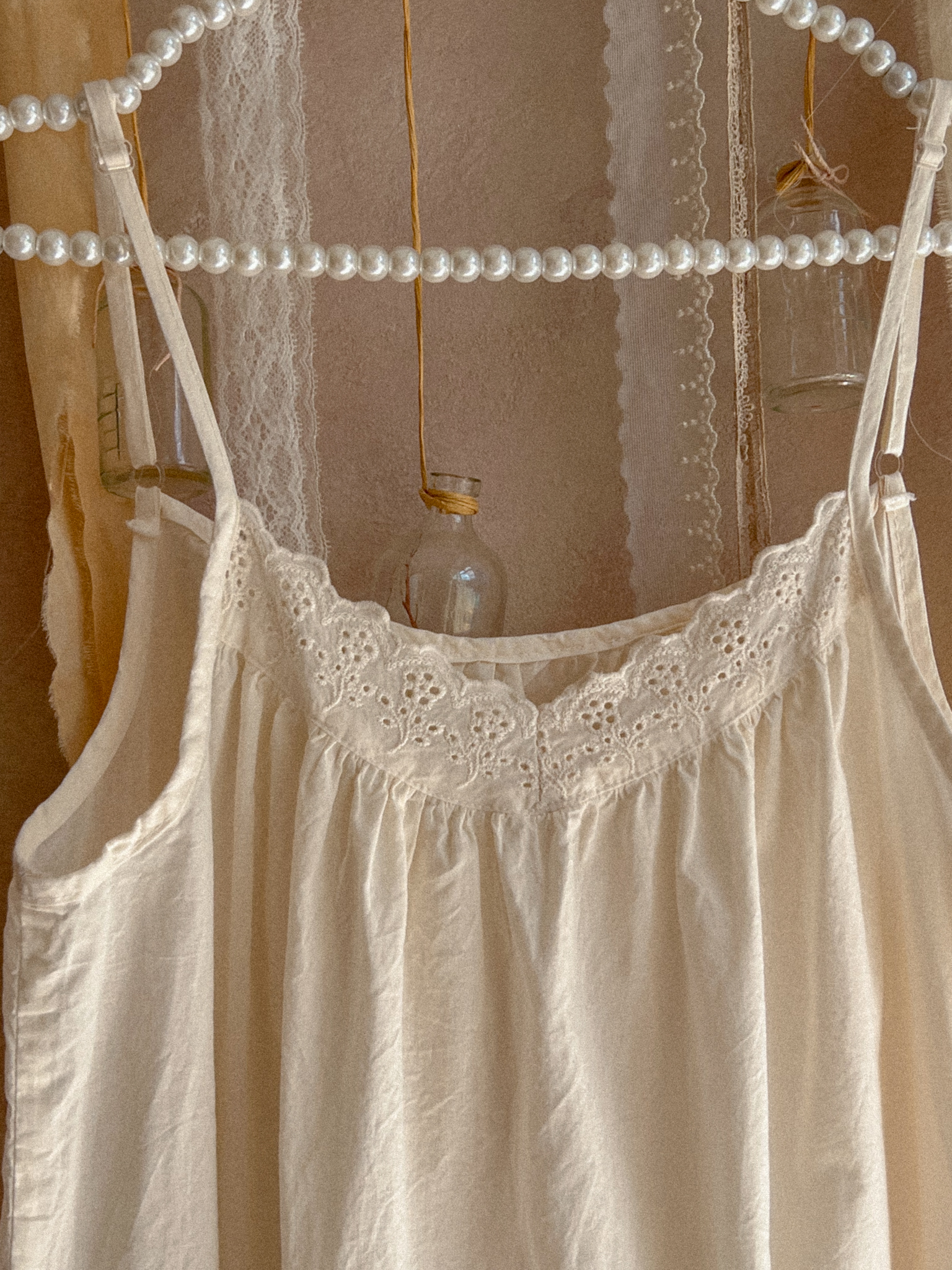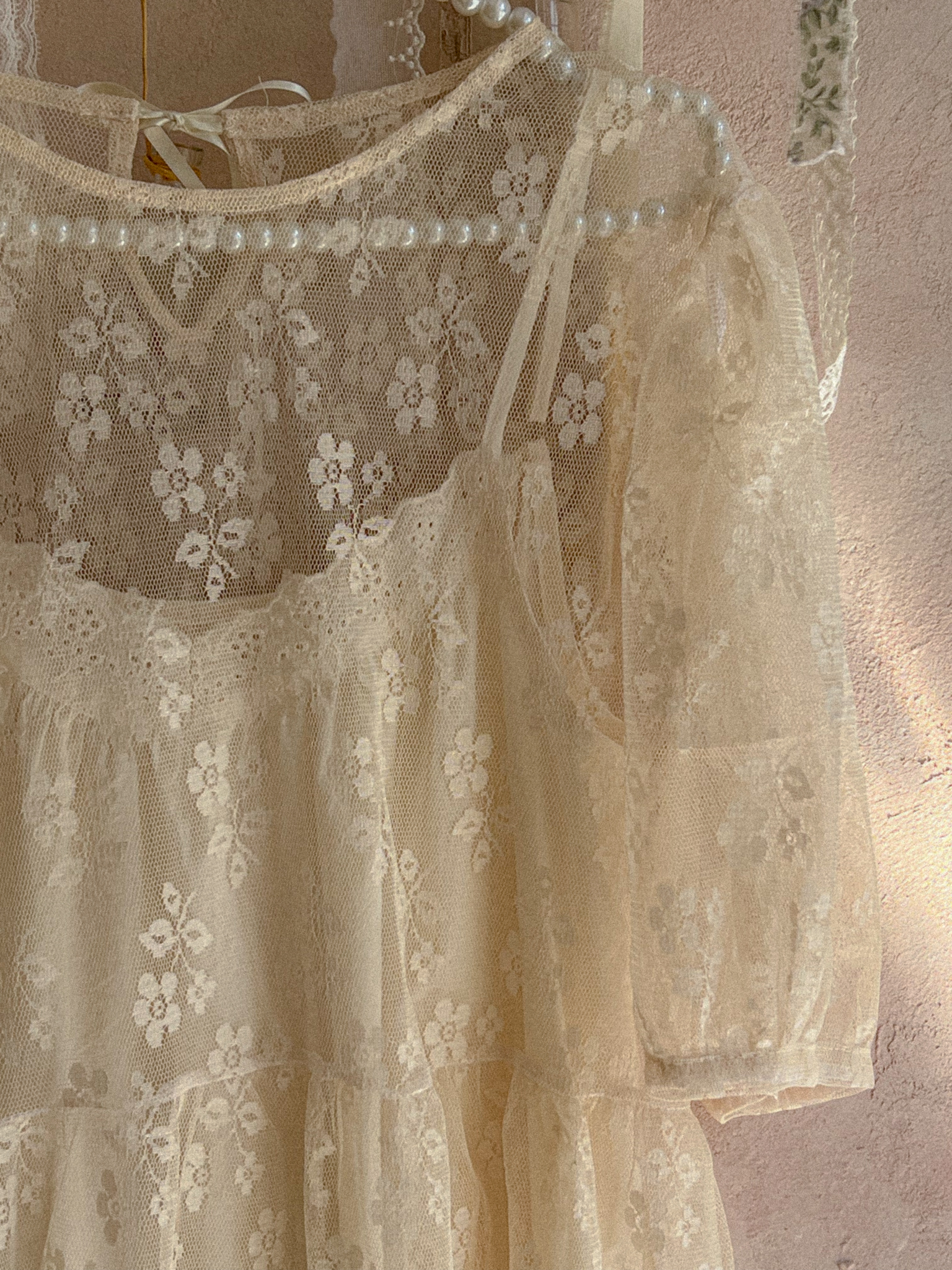 가슴부분과 끝단에 레이스가 덧대져 있어서