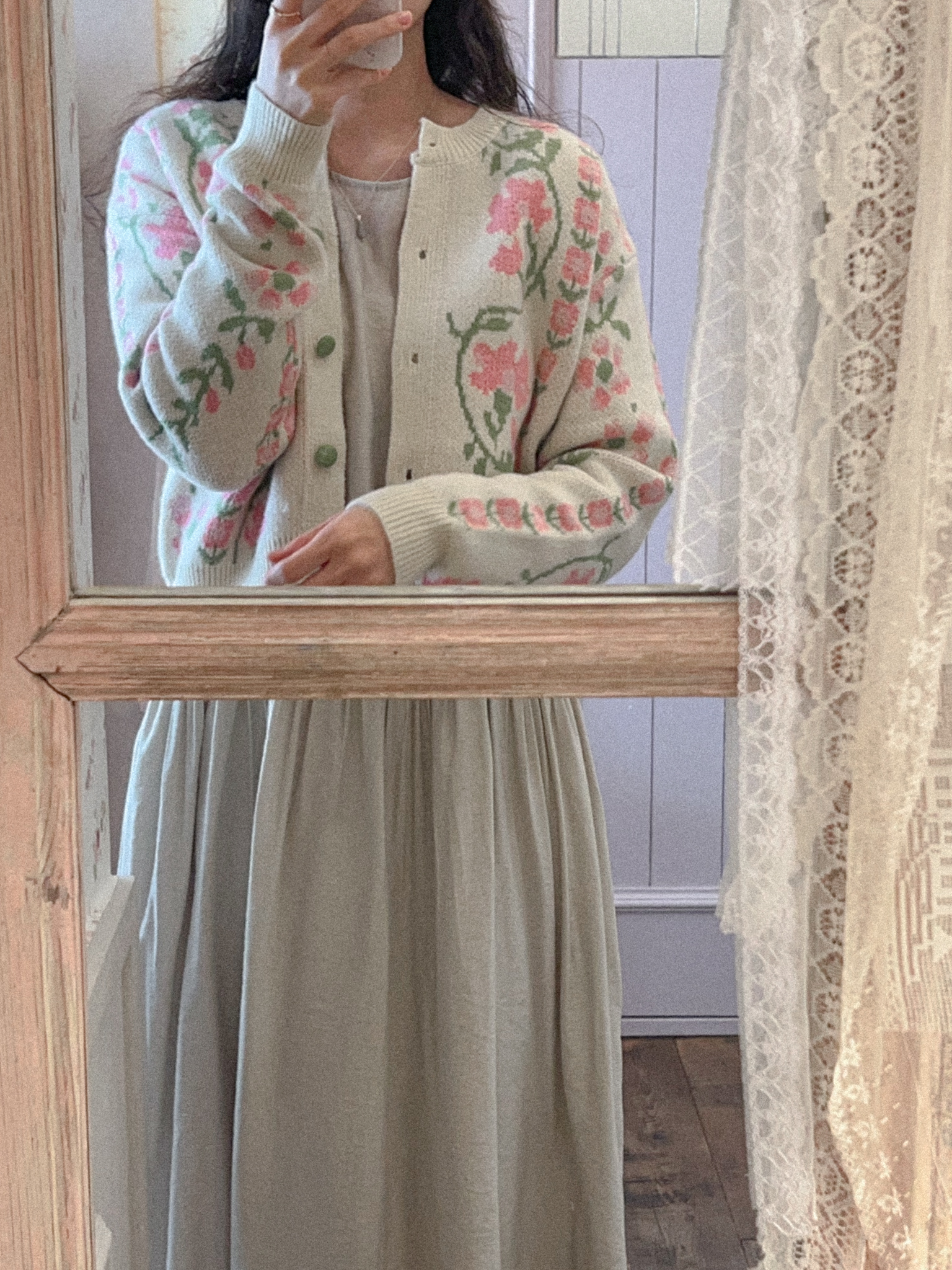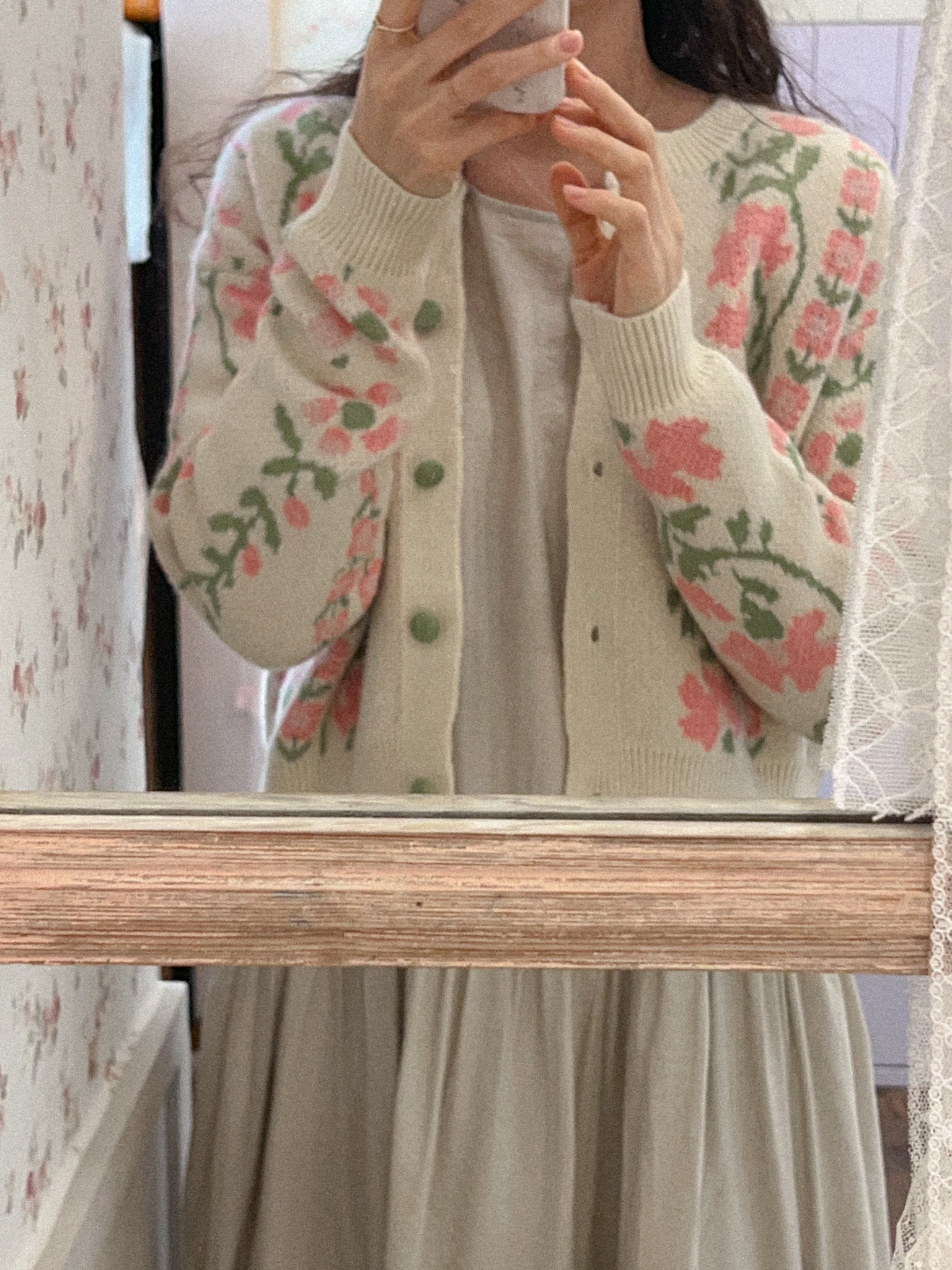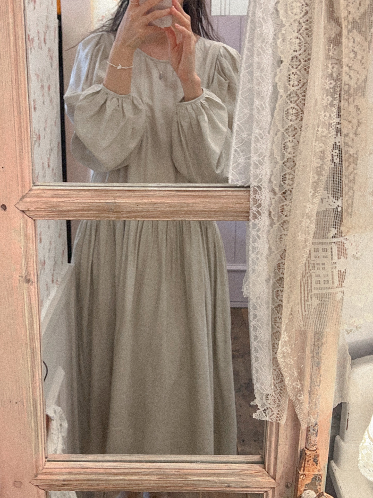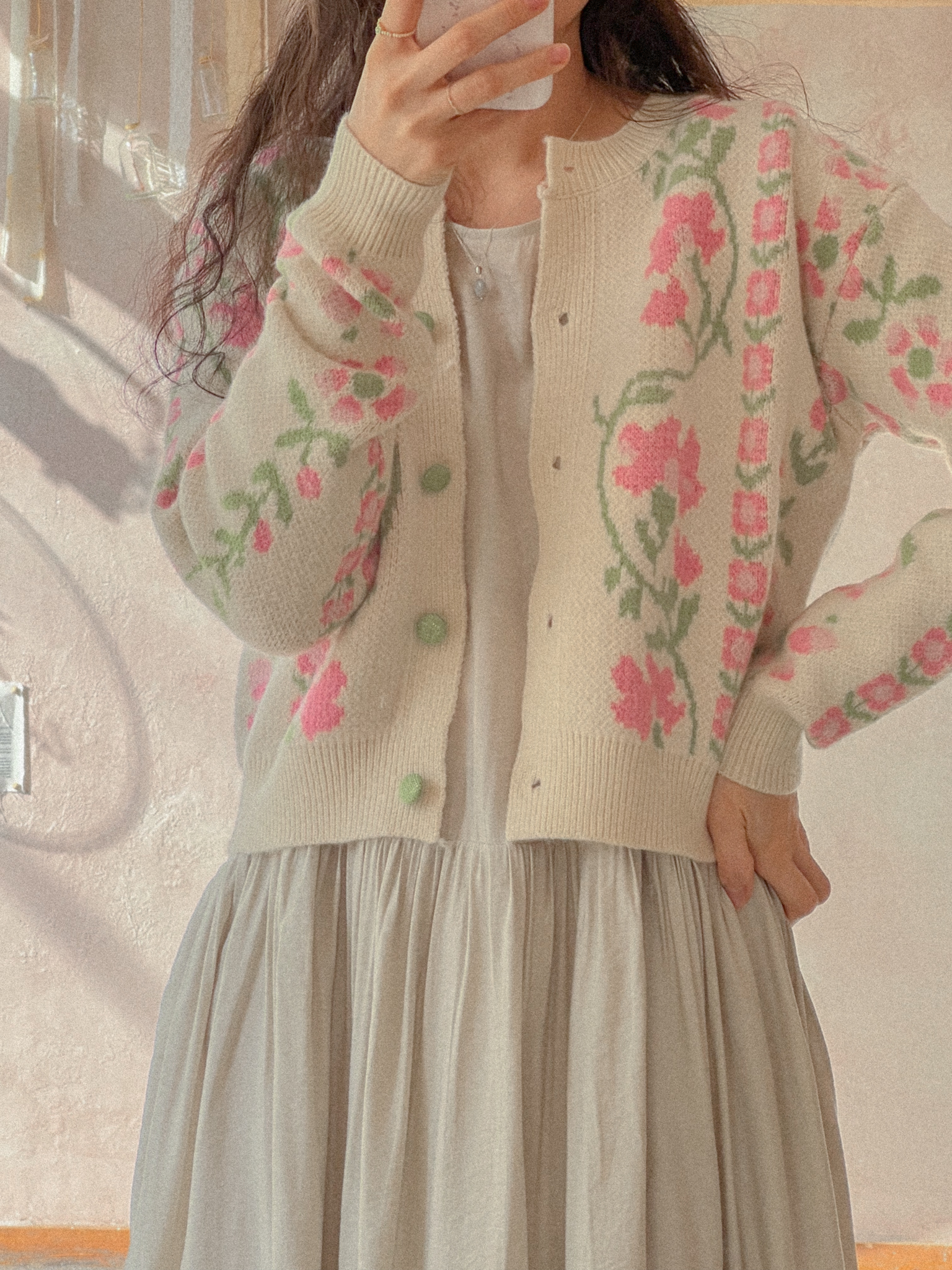 적당히 쇄골라인까지 파여있는 라운드넥에 어깨를 감싸주는 퍼프 소매가