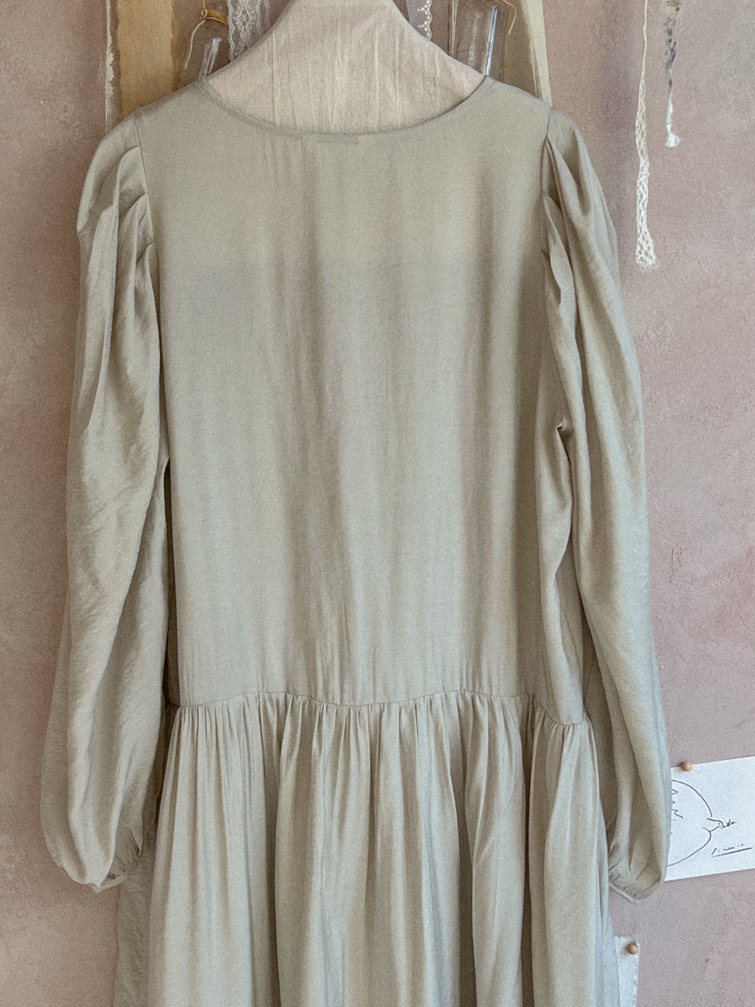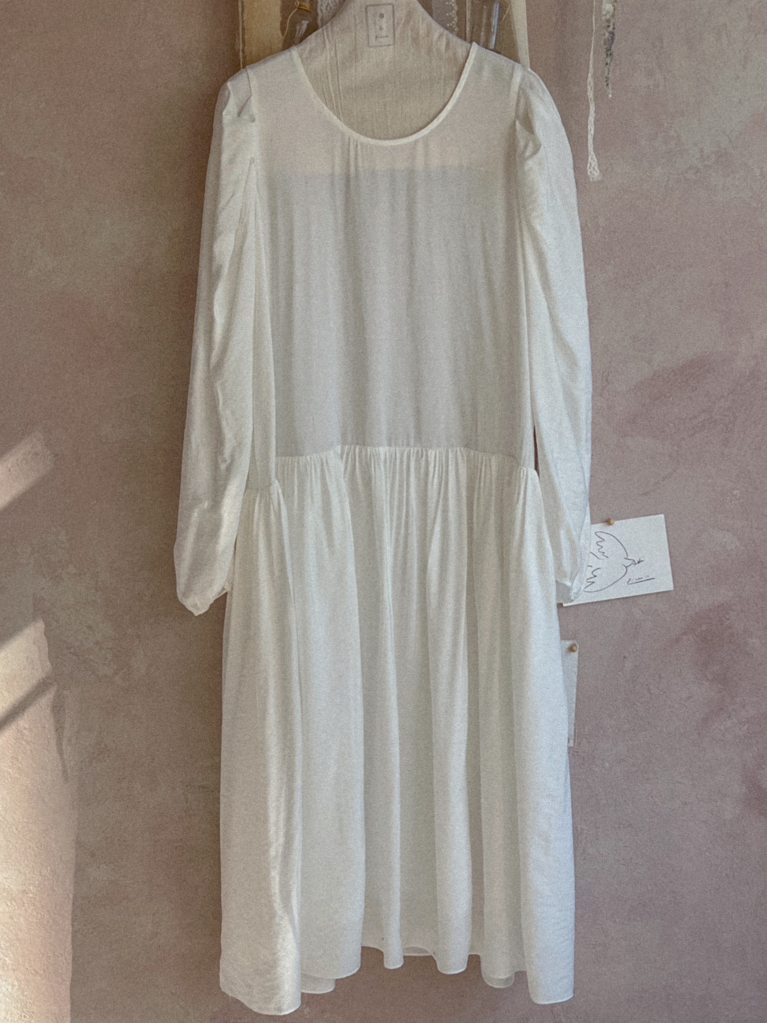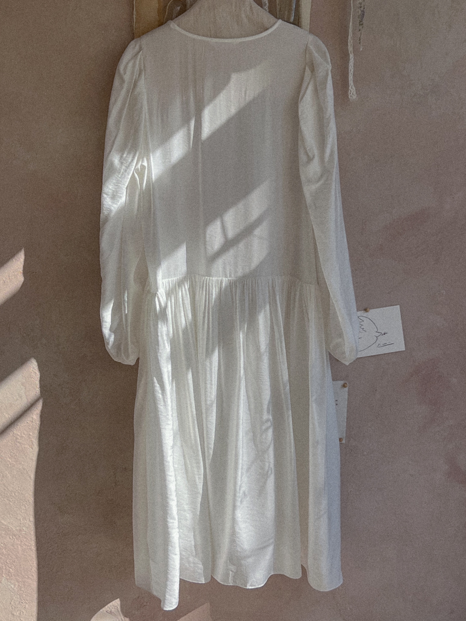 전체적으로 실루엣이 하늘하늘하게 연출되는 원피스 입니다