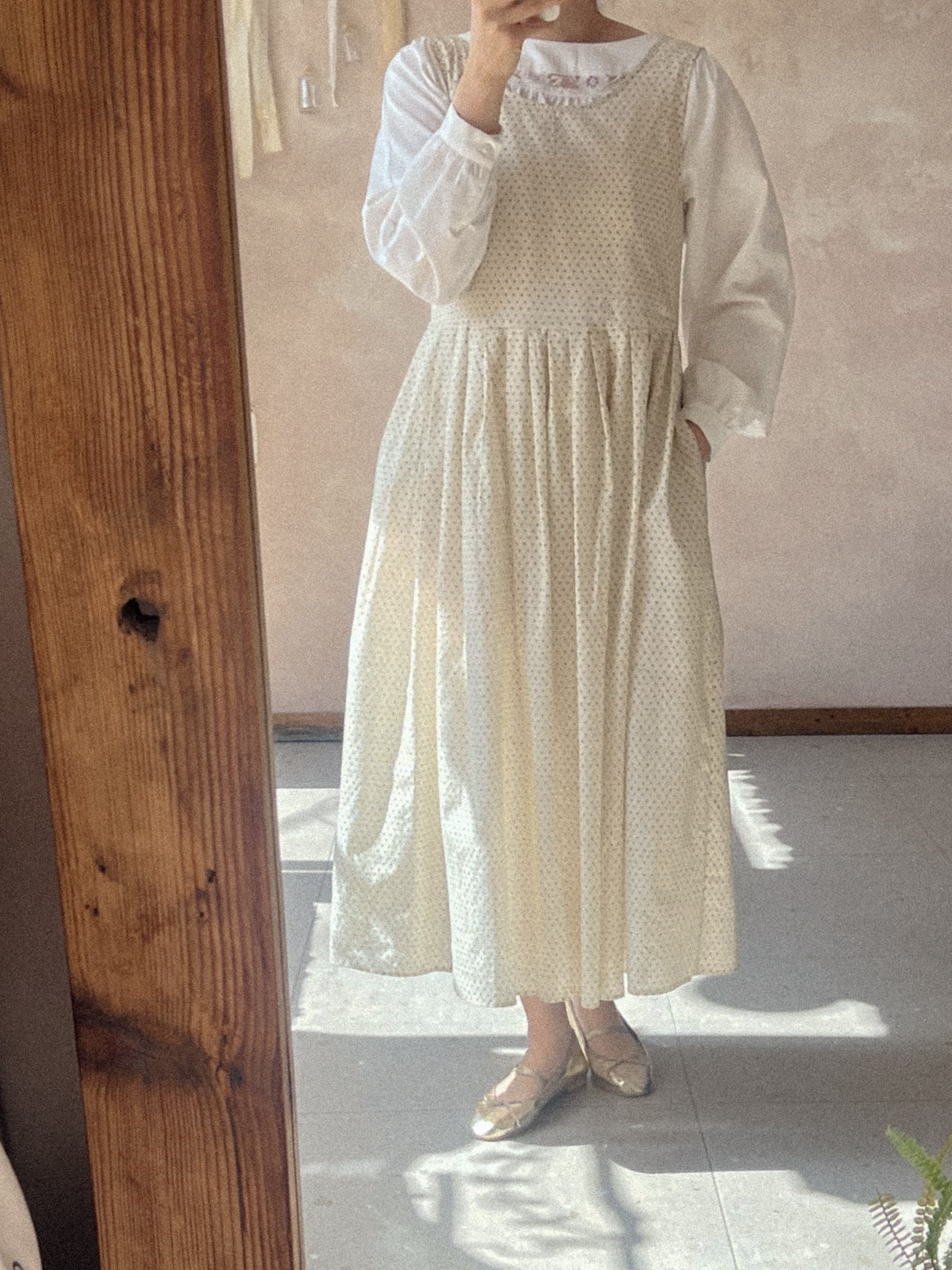 에이프런 같은 디자인의 귀엽고 사랑스러운 원피스 입니다