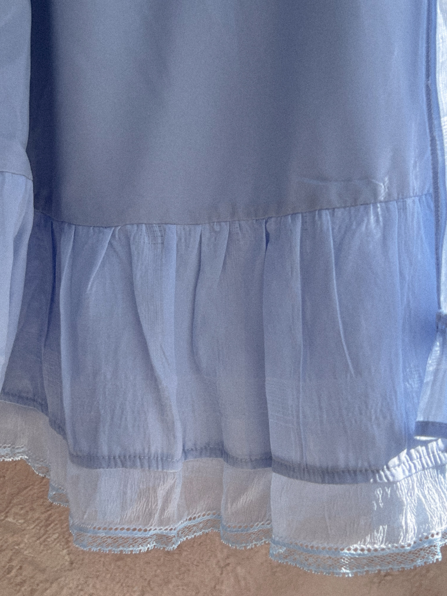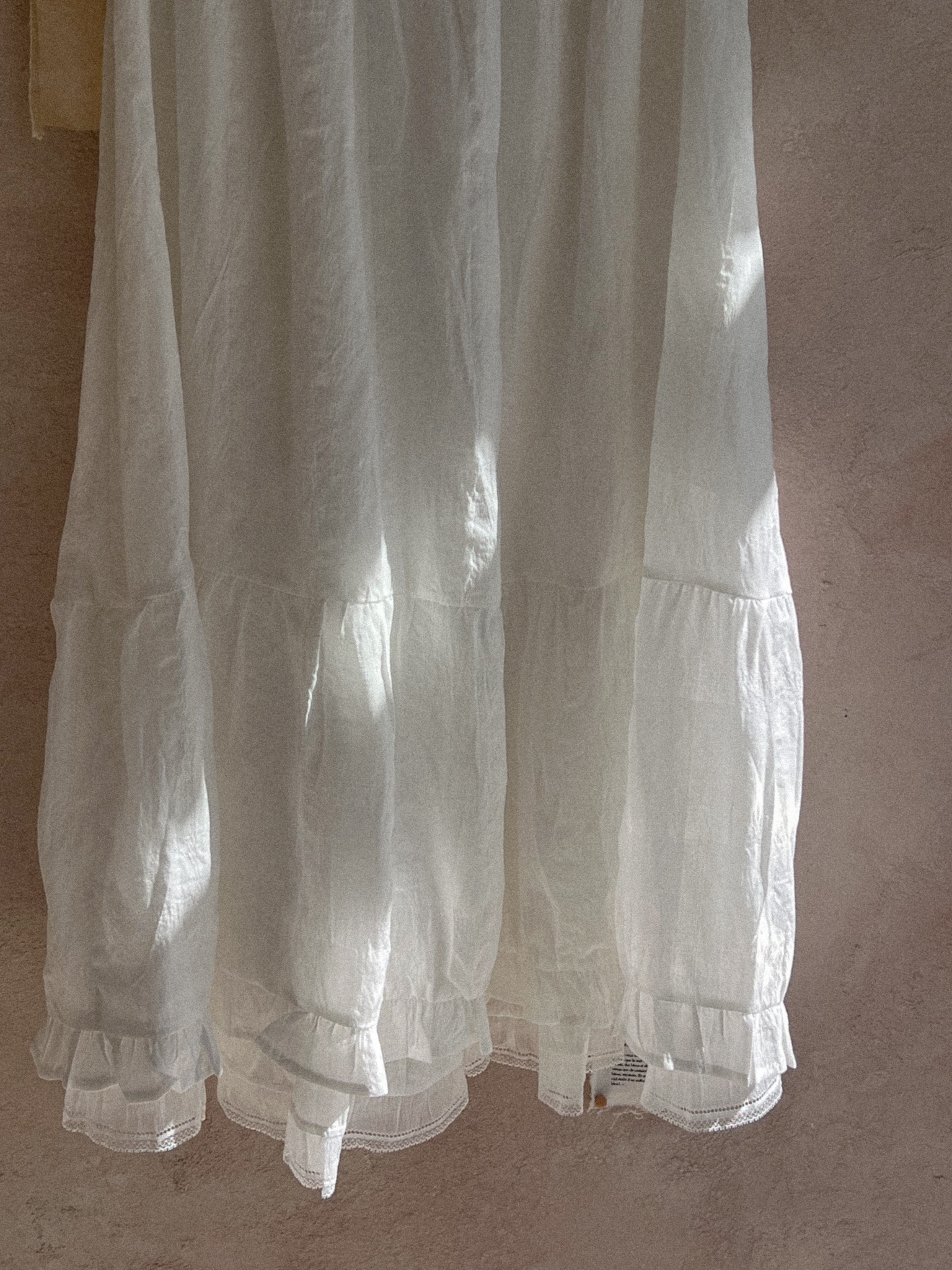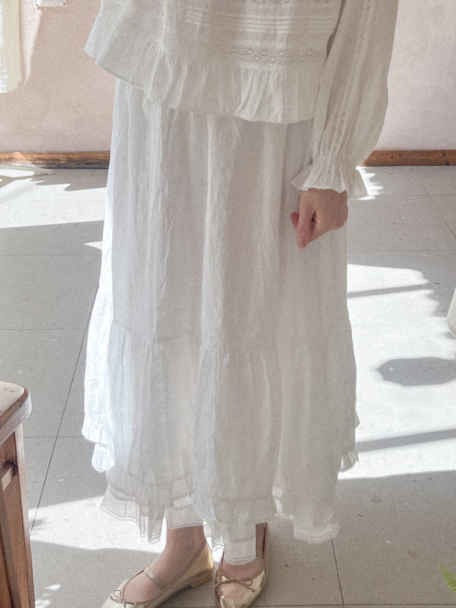길게 내려오는 안감 끝단에 레이스를 덧대어