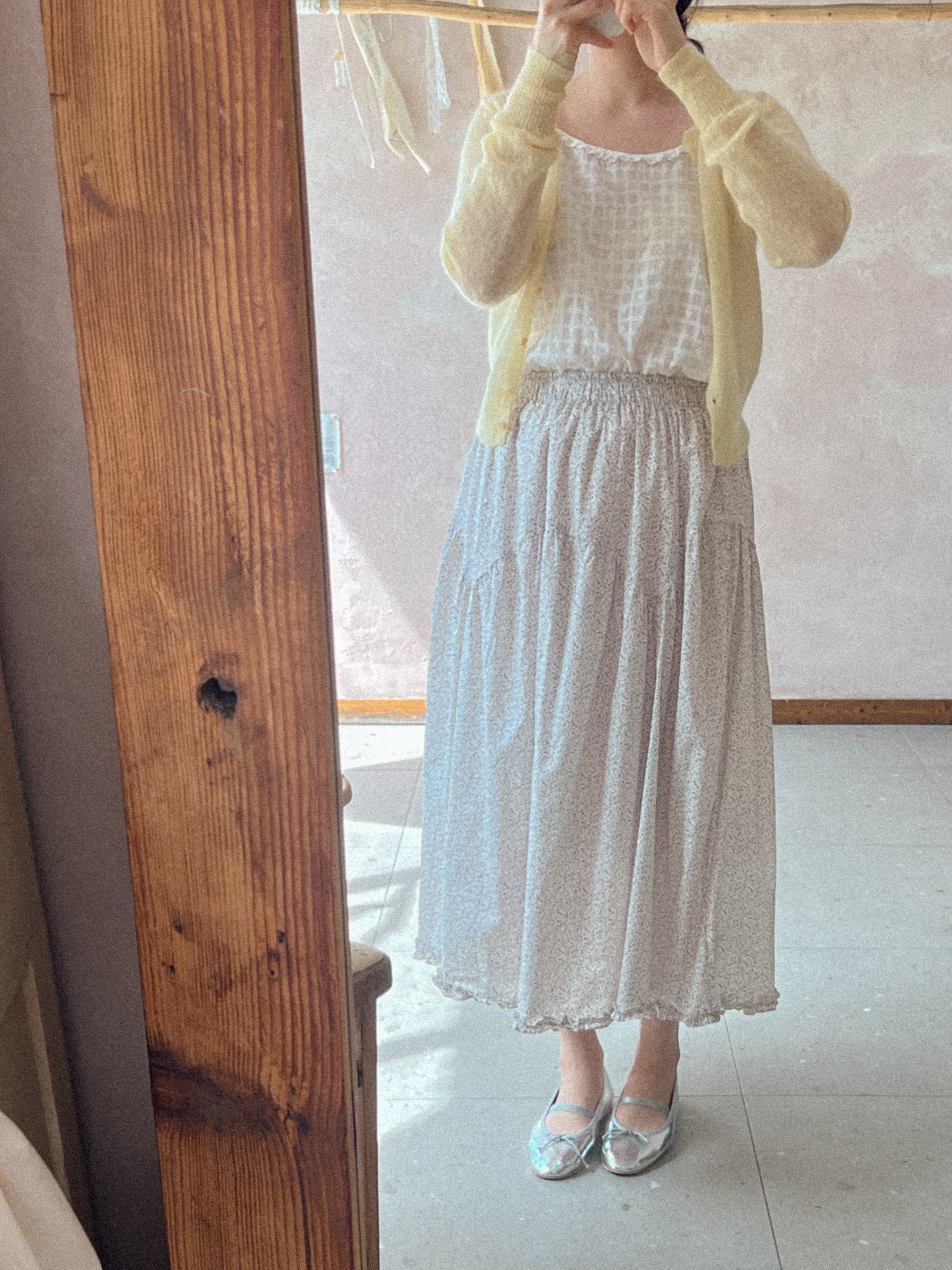 그레이 플라워 패턴의 코튼 스커트 입니다